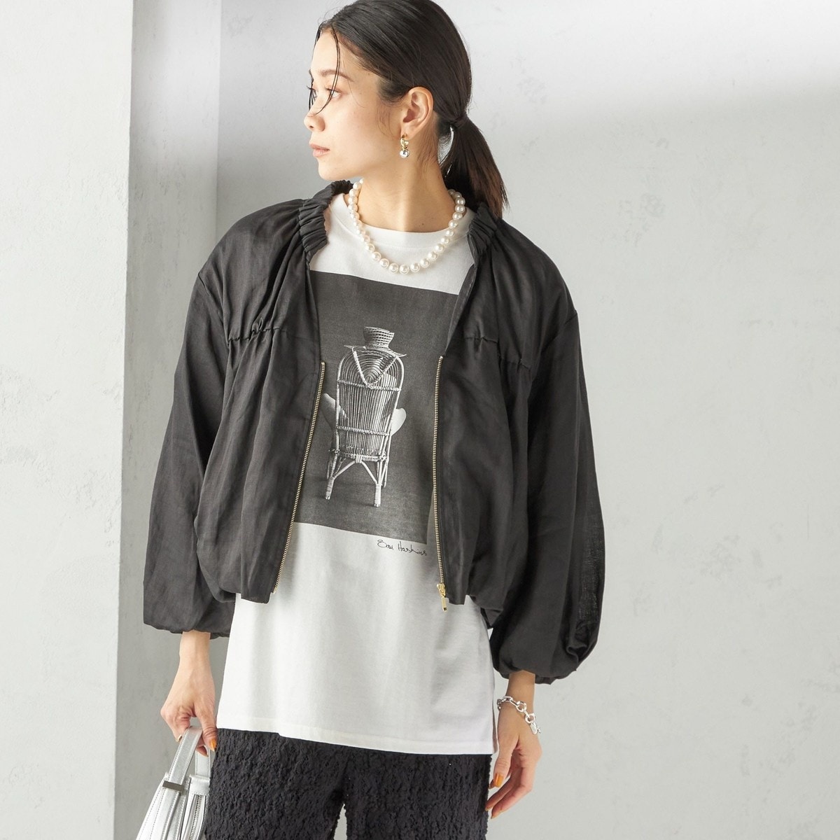 【美品】SHIPS リネン ジップ ブルゾン バックギャザー 手洗い可 春服