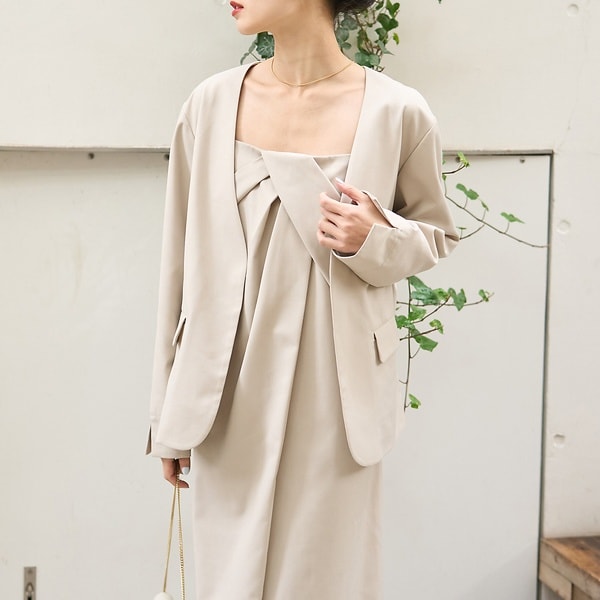セットで着用しても、ジャケットを外してワンピース単体で着るなど、