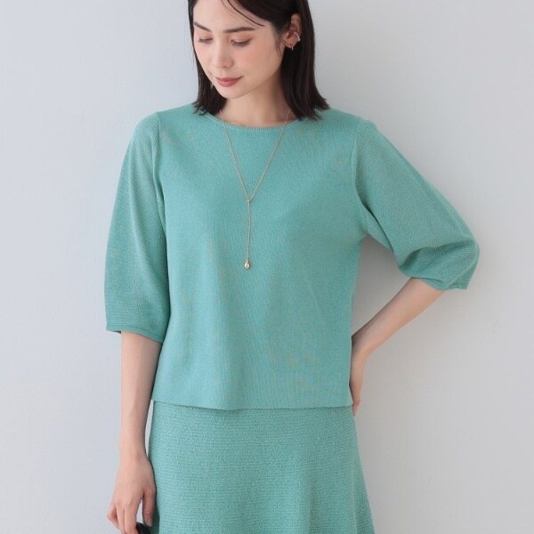 身頃はスッキリしたサイズ感に対し、袖は二の腕に優しく沿う甘すぎないバルーンデザインの5分袖。