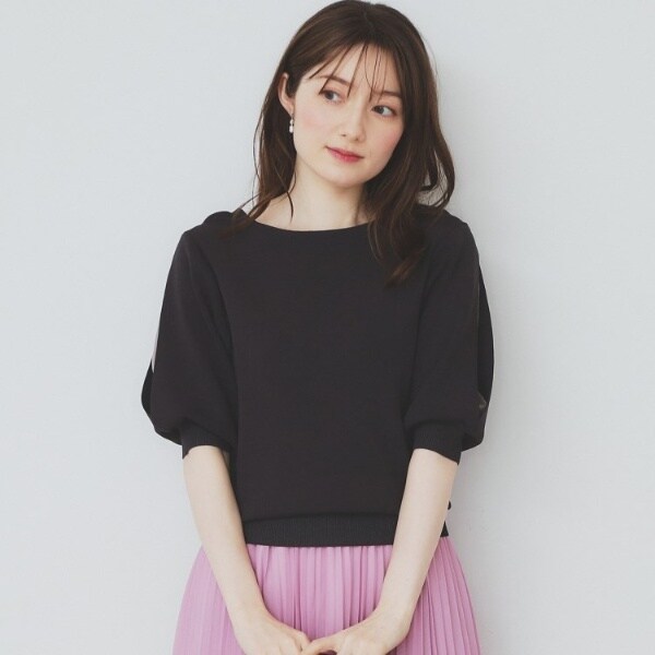 ・五分袖で気になる二の腕周りをふんわりカバー。