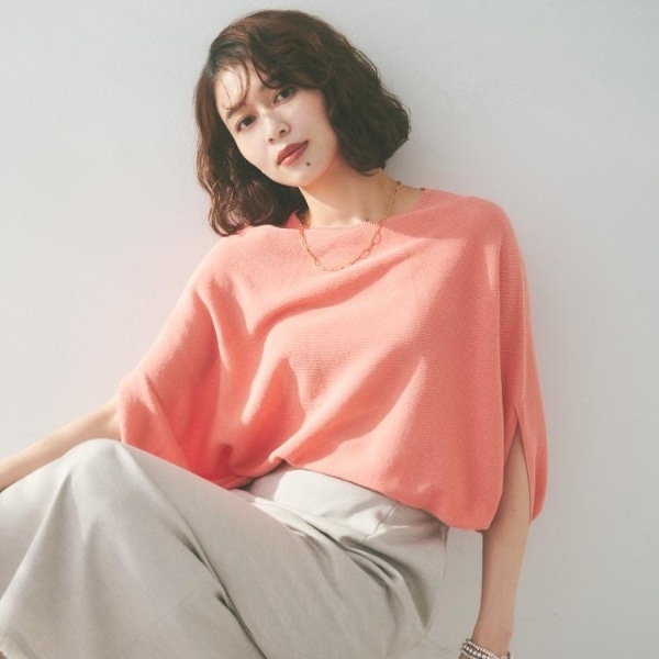 薄手で清涼感あるドライタッチの肌触りが特徴のペーパーエステルのドルマンスリーブプルオーバー。