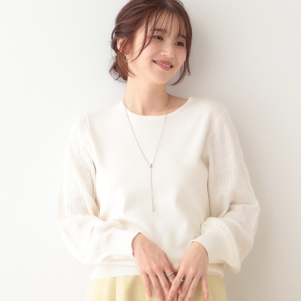 【S-LL】大人上品な お袖シアー切り替えニット