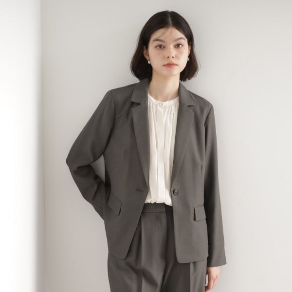 ラペルありのテーラードジャケットは、ウエストを程よく絞った一つボタンのデザインが特徴で、スタイリッシュなシルエットを実現します。