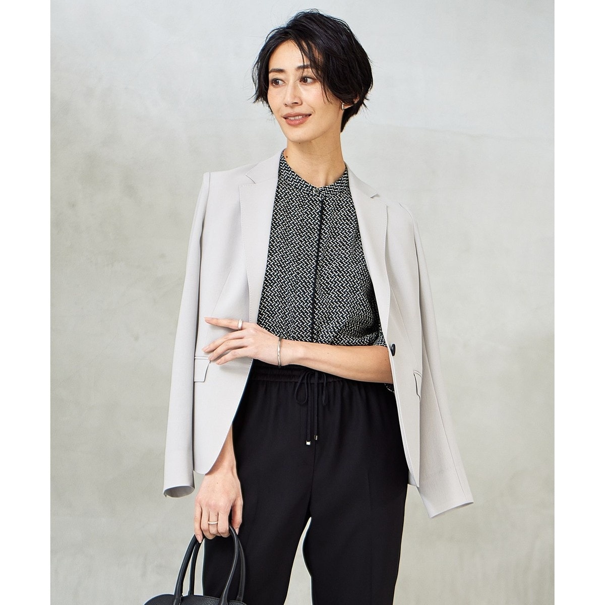 ■デザイン一つボタンのノッチドラペルのテーラードジャケットです。エレガントなウエストのシルエットと襟のカッティングがポイント。お仕事は勿論、セレモニーシーンにもおすすめです。