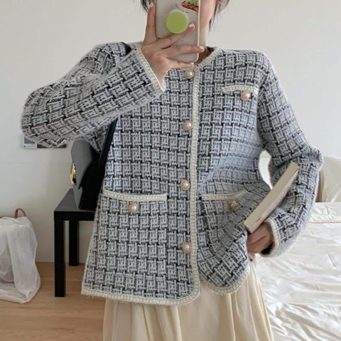 一瞬で華やかになるツイードニットカーディガンジャケットが登場♪<br>