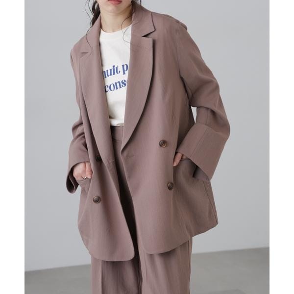 〔fabric&design〕毎年ご好評いただくFREE'S MART定番のセットアップシリーズです。梳毛調合繊セットアップシリーズと同型。清涼感のあるカラッとしたスラブの表面感のある無地生地(#030オフベージュ、#050モカベージュ、#120ネイビー)と、モノトーンにくすみブルーとベージュのラインが雰囲気ある先染めグレンチェック(#021)のアソート展開。ナチュラルテンションもあり、着用感も良いです。定番のダブルブレストジャケット型で、襟のバランスを見直し今季らしくアップデートさせています。袖口はスリット入りなので、袖口を折り返して抜け感を出しこなれた着こなしも。背裏のみの仕様で軽くし、ロングシーズンでジャケット着回しを楽しんでいただけます。〔styling〕同素材の麻調合繊タックワイドパンツ(131-5130021)、麻調合繊ベルト付きタックショートパンツ(131-5130022)と合わせてセットアップでのご着用がおススメ。