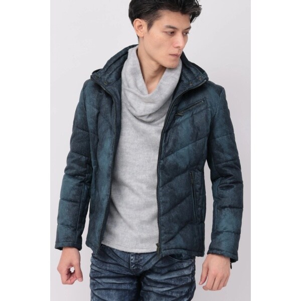 T/Cスエード×ヘアライン柄ダウンブルゾン。