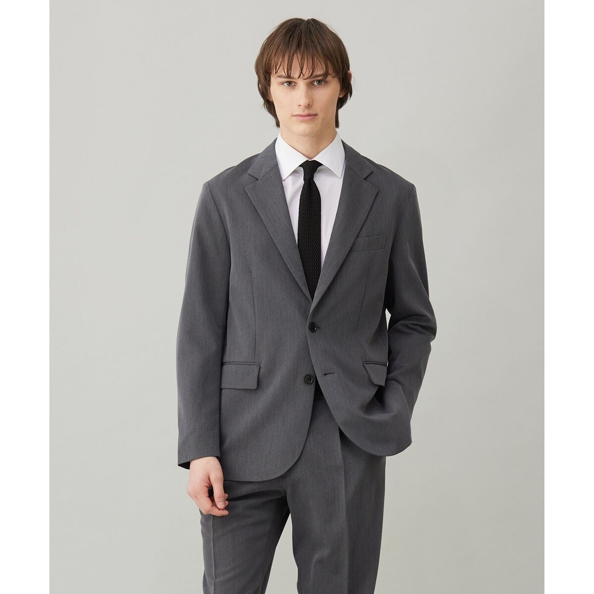 ■デザイン大人が着やすいシルエットを追求したテーラードジャケット。通常よりもシェイプしたウエストライン、動きを邪魔しない絶妙な袖丈にこだわり、フォーマルな印象を感じさせるジャケットに仕上げました。シングル2釦、センターベント、ノッチドラペル仕様。またストレッチ性と肌触りが良く、総裏仕立てでしっかりとした着用感です。同素材のパンツを合わせれば、オフィスシーンで着用いただけます。
