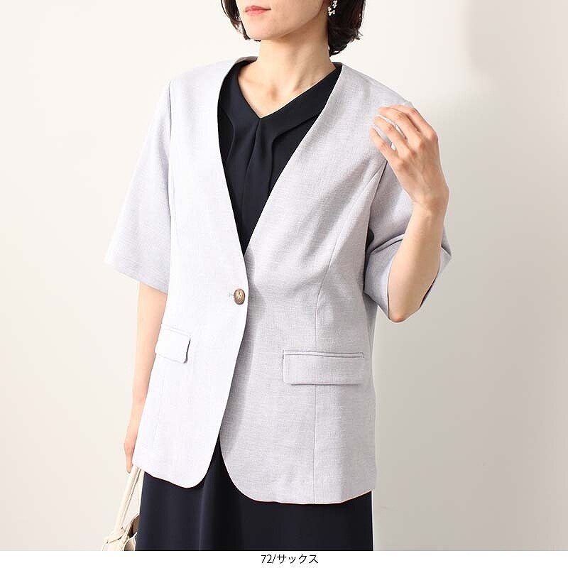 《23区》新品 定価37,400円 薄手 ドリープリネンツイル サマージャケット 大きいサイズ 46(15号) A6452