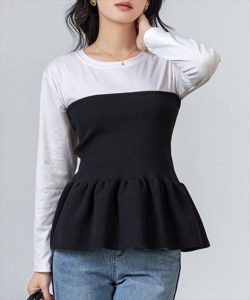 【新品•即日発送】実物検品済み ニットビスチェドッキングペプラムトップス