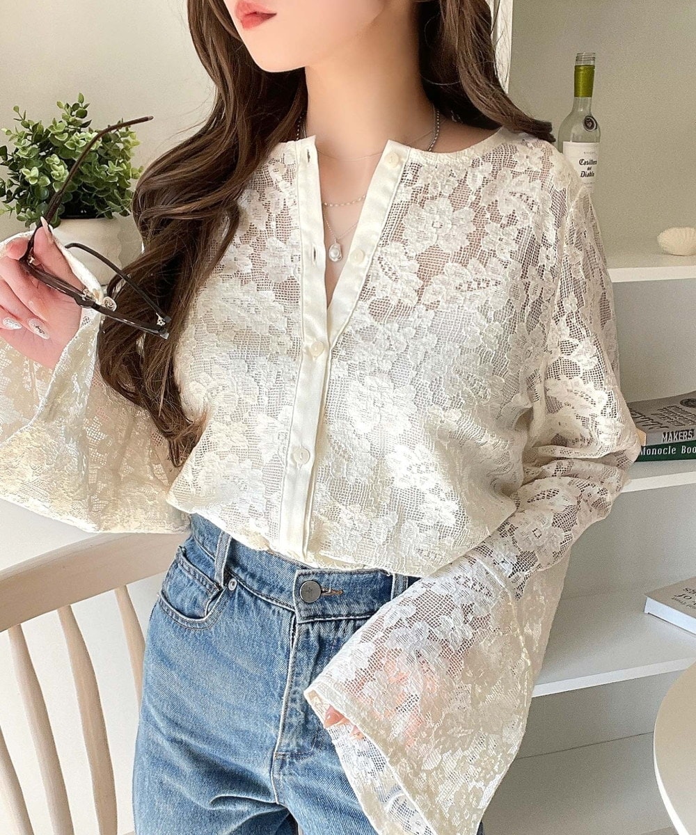 トップス 綿・コットン素材 / ポリエステル素材 / 無地 / 花柄 / レース / 長袖 / フレアスリーブ / LL・13号以上あり / S・7号以下あり / 大きいサイズあり / 洗える / ラウンドネック / ボタン / カジュアル / クロップド丈(トップス)