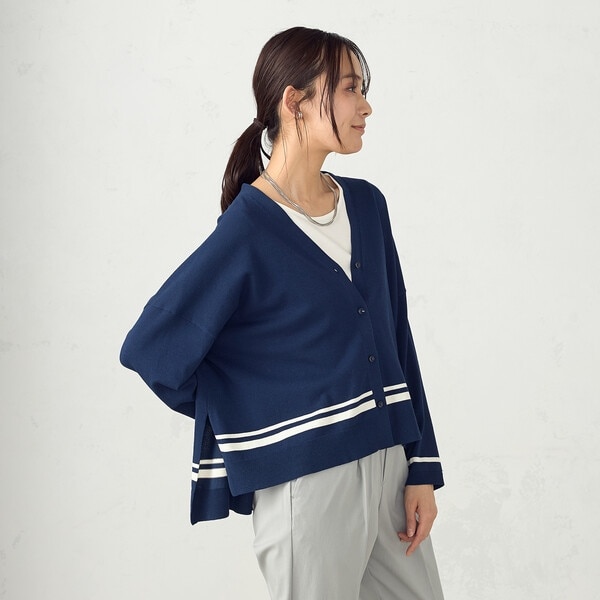 さらっと羽織れる一枚あると重宝するカーディガンです。