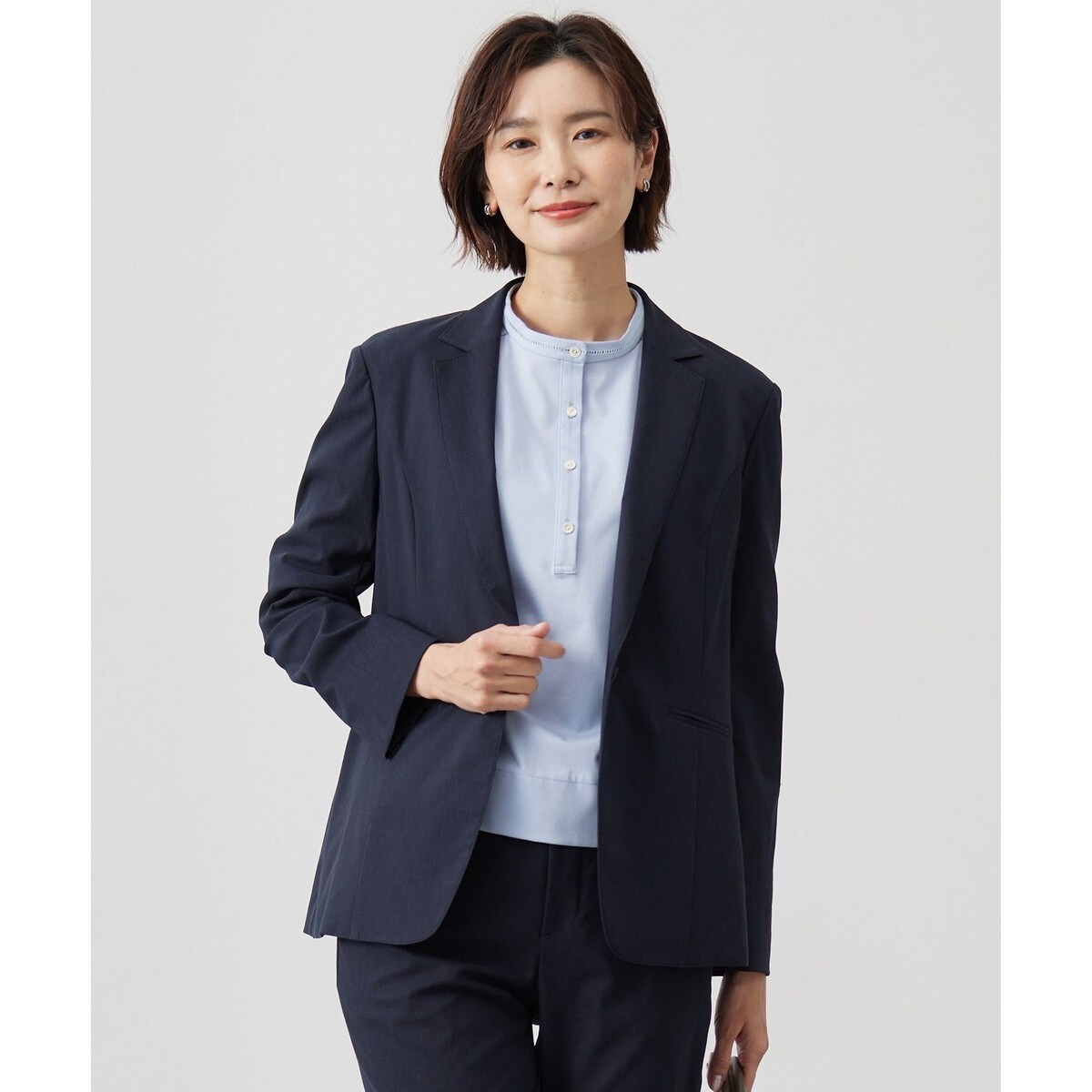 ■デザインベーシックな1つ釦のテーラードジャケット。通勤でもカジュアルにも着て行ける、長めの着丈が大人っぽい雰囲気を演出してくれます。ストレッチ性もあるので動きやすく、裏地なしなので軽い着心地です。身幅の方もゆったりとしており、リラックス感のあるシルエットで、一つ持っていると万能なアイテムです。袖口がリターン設定になっているので袖丈の調節も可能です。