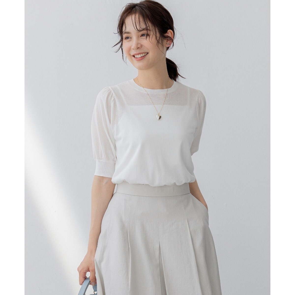 シアーな素材感が今年らしい汎用性抜群なパフ袖ニット