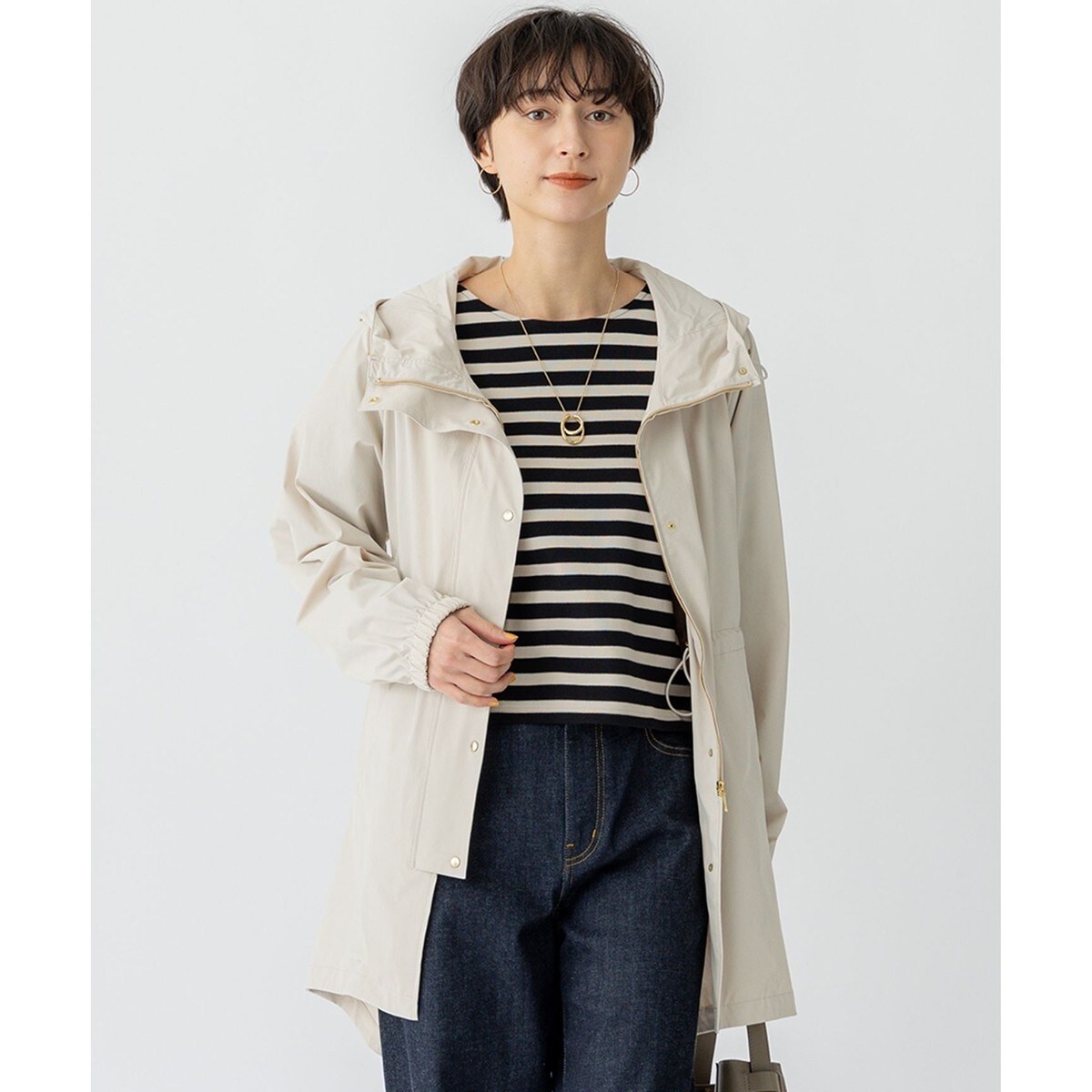 毎年好評のナイロン2WAYシリーズのフーデットアウター。今年のデザインはジップと釦の仕様で雰囲気のあるデザインに。ウエストやフードにはドロストコードをあしらい、絞ることでシルエットの変化を楽しめます。腰周りがしっかり隠れる長めのレングス設定なので、気になる部分もさりげなくカバーでき安心してお召いただけます。きれいめからカジュアルまでON/OFF両方で着用いただける便利なアウターです。カラーは、ニュアンス感のあるグレー(#004)、明るい印象のベージュ(#033)、ミリタリーな雰囲気のカーキ(#054)の3色展開です。