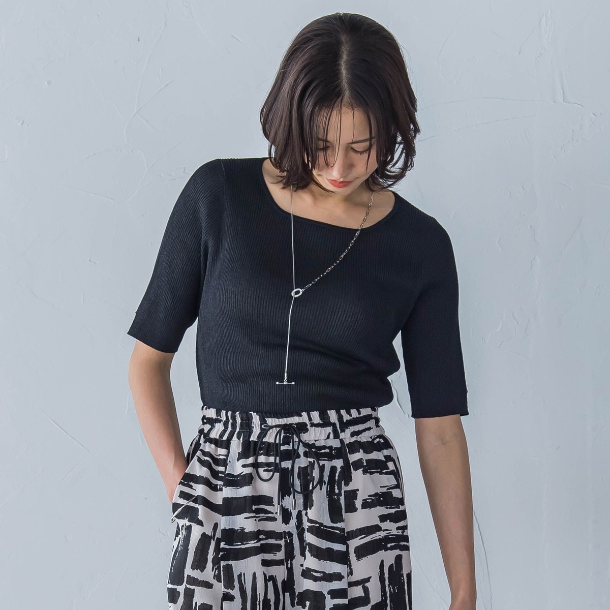 アシンメトリーラメハイゲージニットプルオーバー≪手洗い可能≫