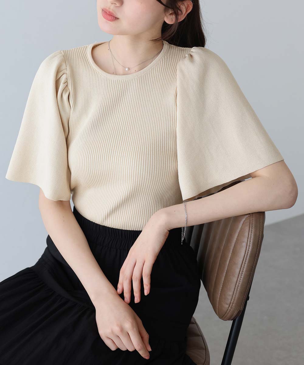 デイリーに着まわしやすいベーシックフレアスリーブサマーニット