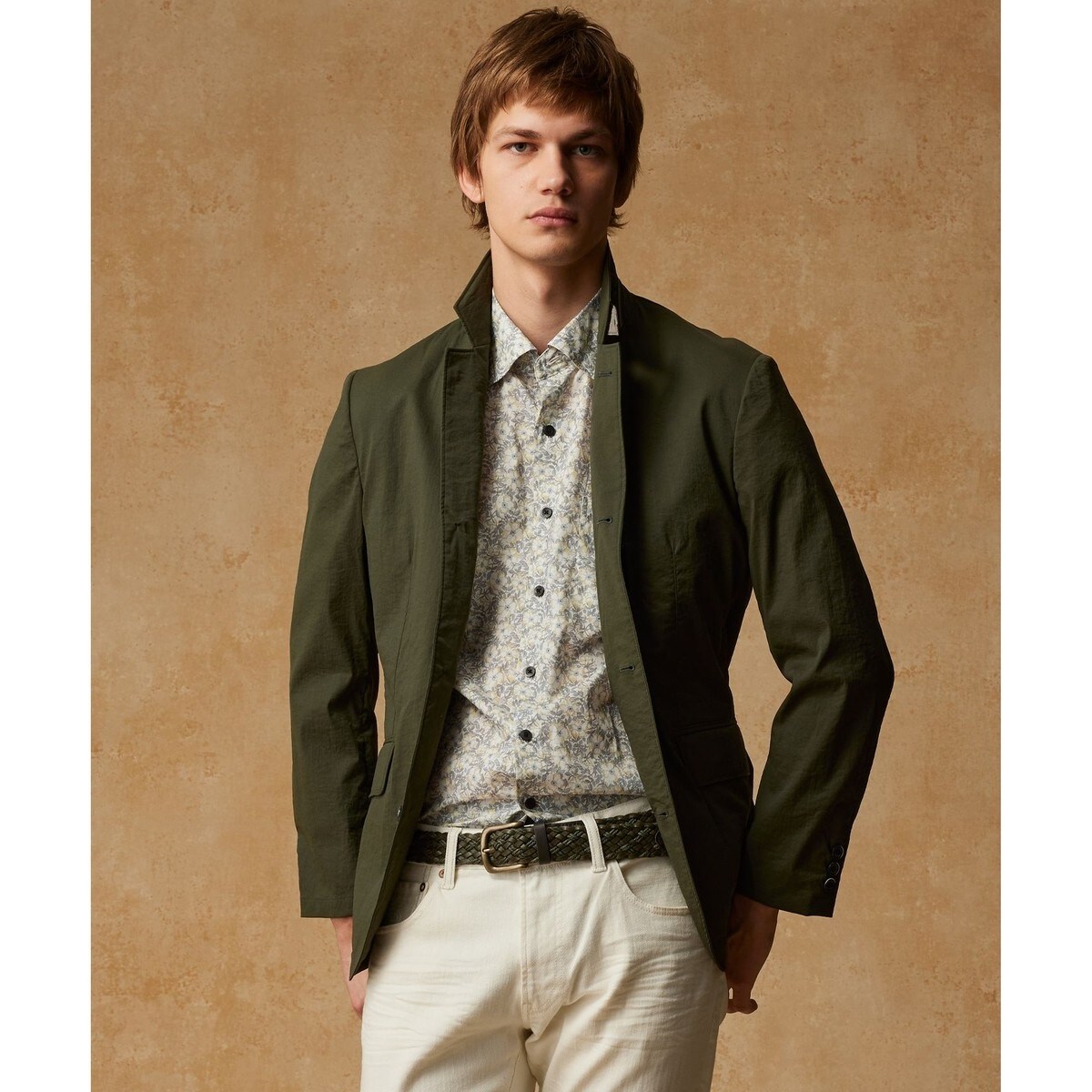 ■デザインコンバーチブルカラーを採用し、衿を立てても寝かせても決まるドライビングジャケットです。背抜き仕様の裏地にはオリジナルプリント裏地を使用し、脱いだ際のおしゃれも忘れません。7つのポケットでデザイン性と機能性を高めています。また、撥水加工にはC0撥水(有害物質を含まず、環境に優しい新たなフッ素非配合の撥水加工)を施した、春先から梅雨時期まで幅広いシーンで長く活躍します。普段使いだけでなく出張や旅行にも気軽に持ち運びやすいアウターです。