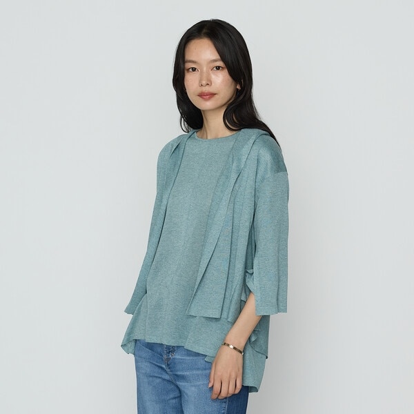 ハイゲージの編み地は薄くはりがあり、光沢のメランジカラーが美しい素材です。