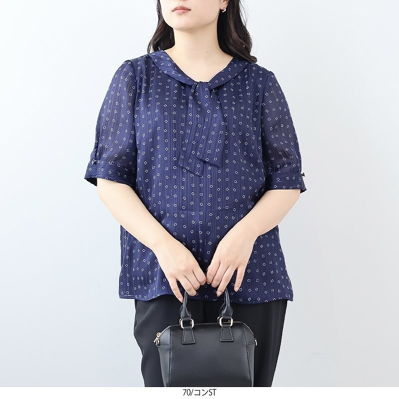 【新品タグ付き】大きいサイズ ボウタイブラウス 日本製 手洗い可能 ジョーゼット