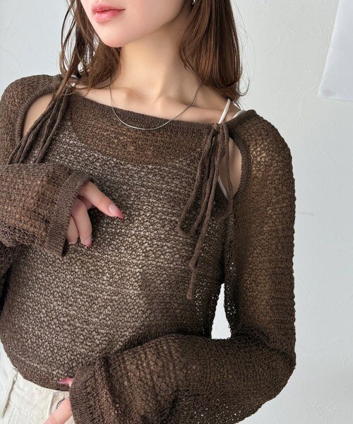 透け感のあるメッシュ編みで、ほどよい肌見せが叶い、