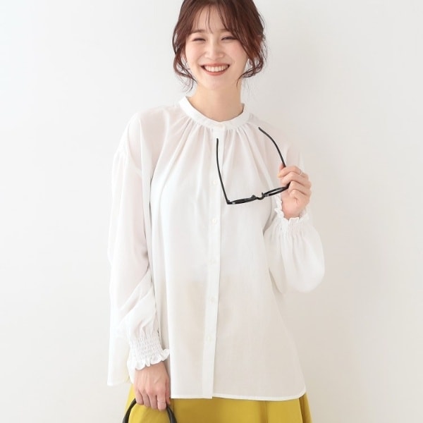 【S-LL洗濯後しわになりにくい吸水速乾UV】大人フェミニンな装いに 襟フリルブラウス