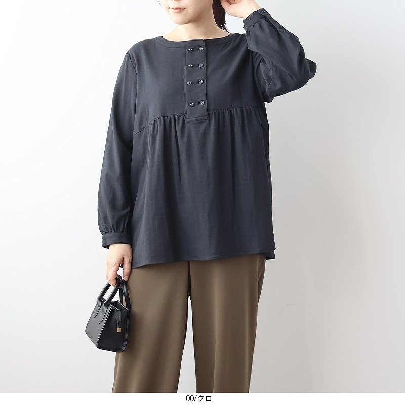 激安新品 LL セージ ダブルガーゼ 小衿付 ブラウス チュニック 七分袖スキッパー大きいサイズ シャツブラウス コットン