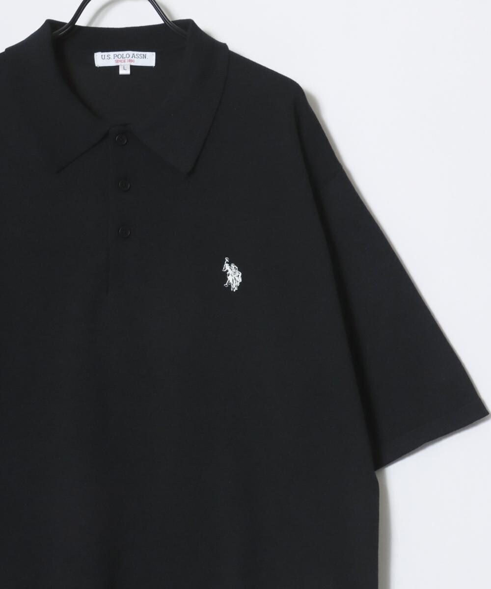 U.S. POLO ASSN./ユーエスポロアッスン オーバーサイズ ニット 無地 ストライプ ロゴ ワンポイント刺繍 半袖ポロシャツ/レディース メンズ