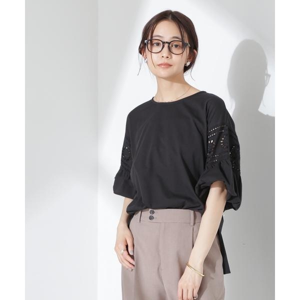 女性らしく映えるレース切り替えスリーブのカットトップス。女性らしく柔らかい印象のフラワー柄カットワークレースと立体的なバルーンスリーブが相まって、女性らしさを底上げしてくれる着映えアイテムです。