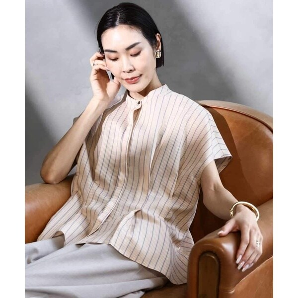 ストライプショートタックブラウス