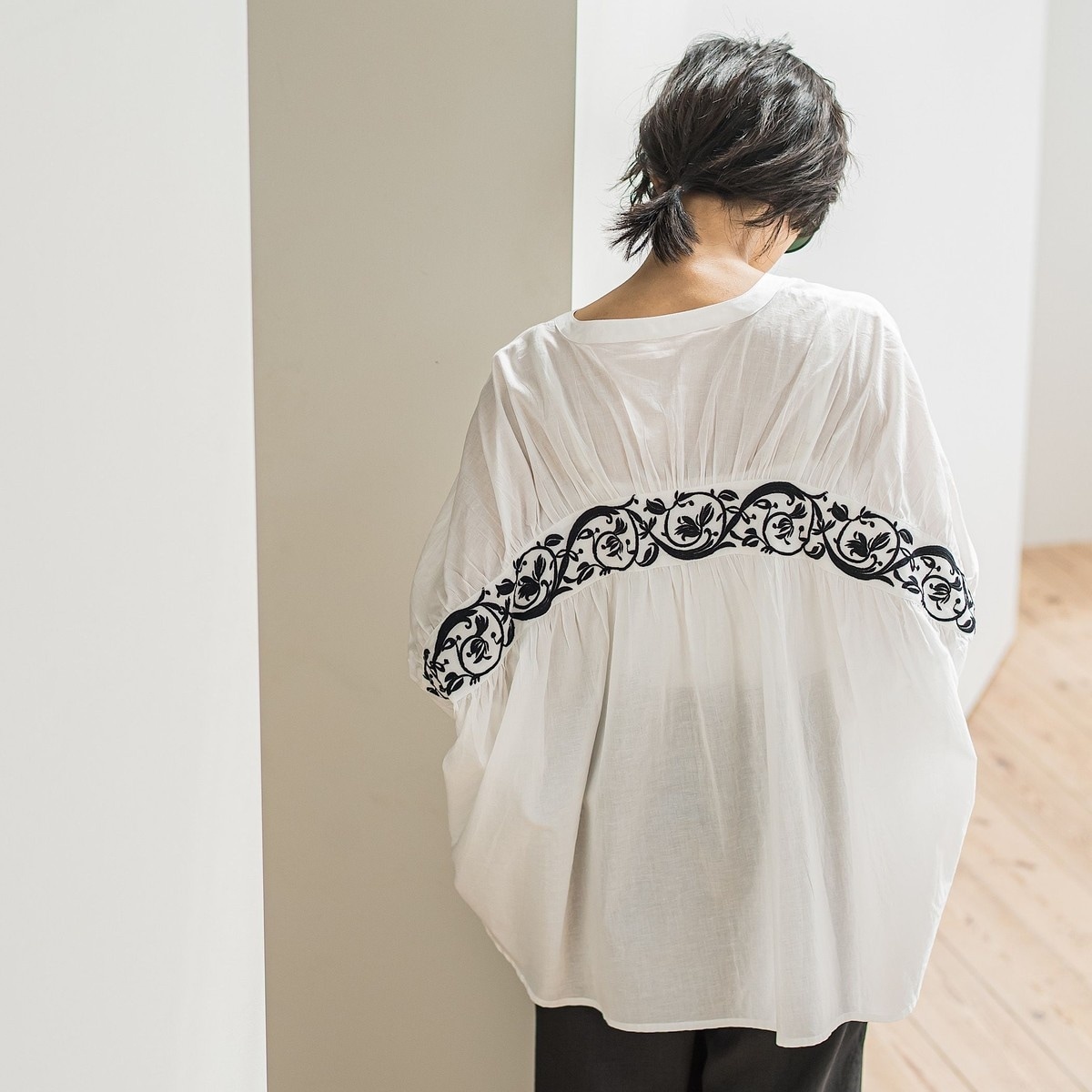 《予約》【WEB限定】〈手洗い可能〉ショルダー 刺繍 タック ブラウス