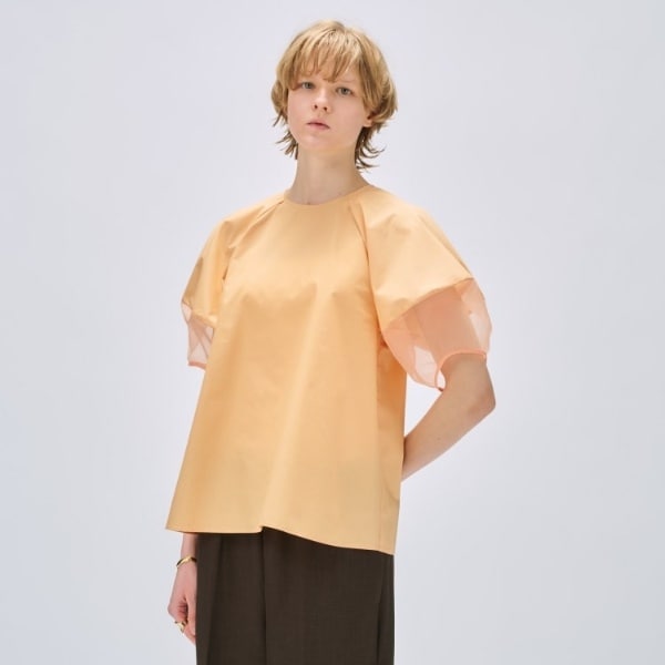 チュール レイヤード ギャザー ブラウス