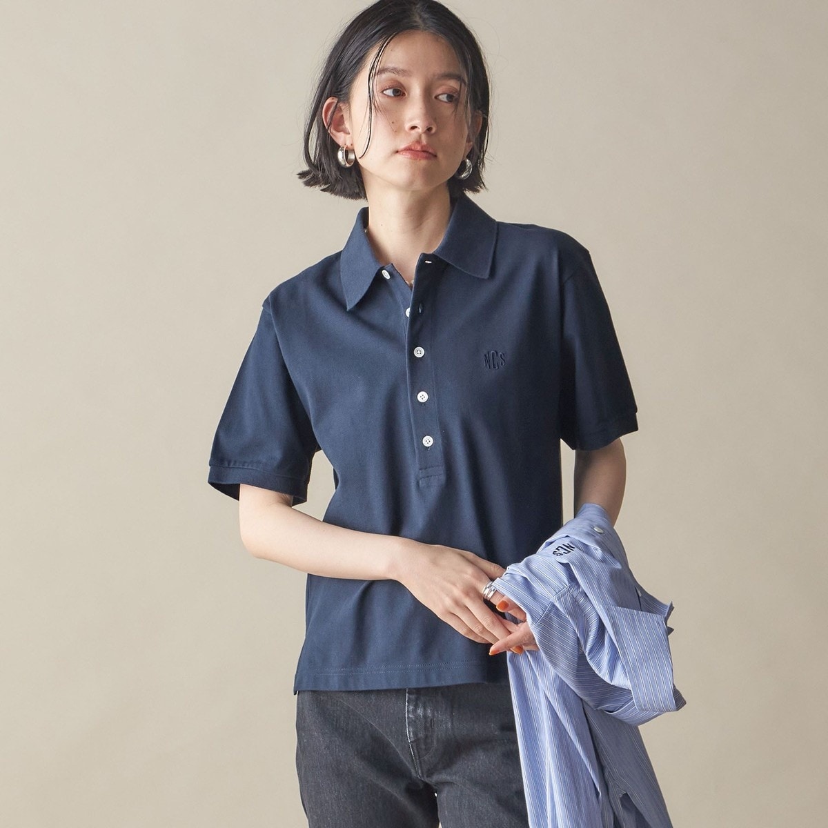 【SHIPS 】ダンボールニュアンスカラーステッチチュニック ベージュ