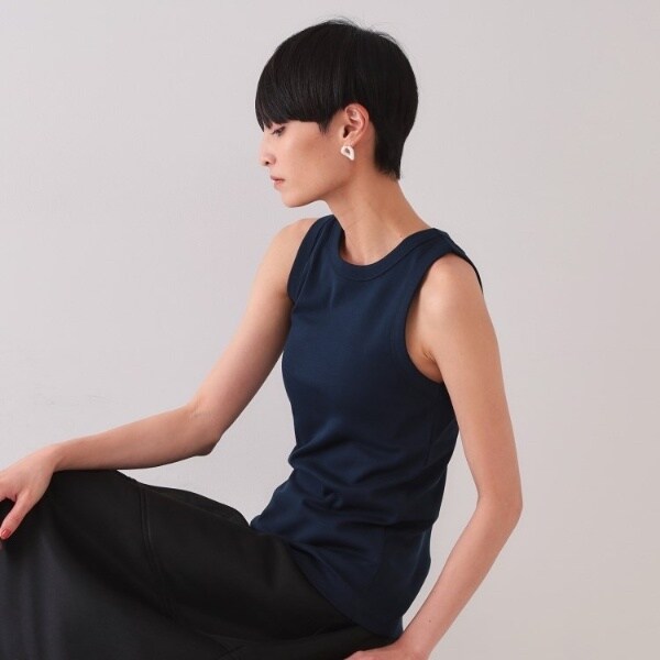 ・肩幅をやや内側に入れた、アメリカンスリーブデザインのタンクトップ。