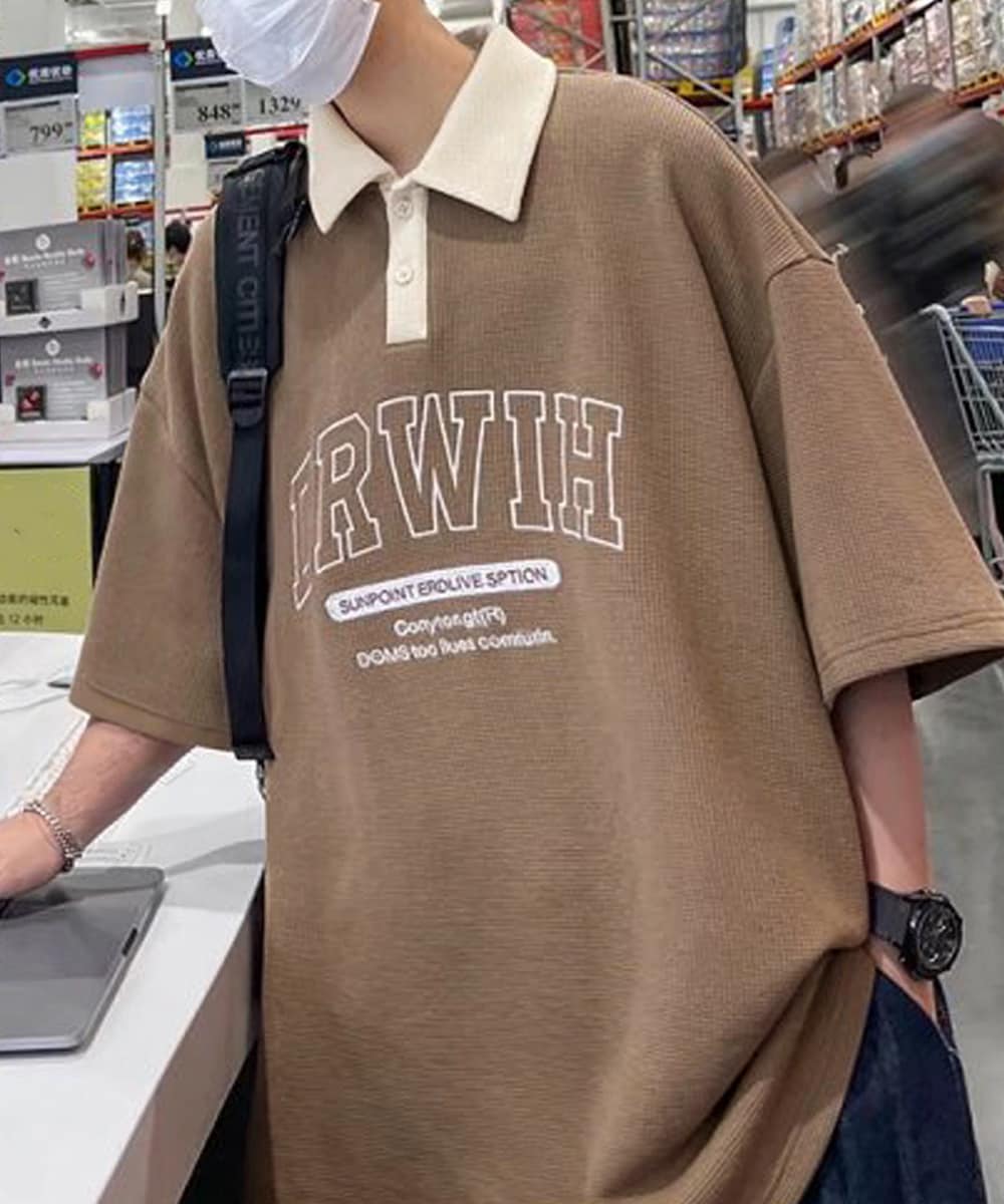 存在感バッチリの英字刺しゅうロゴがカッコイイツートンカラーポロシャツ