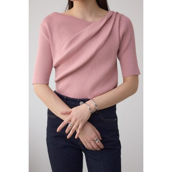 ■ドレープデザイン5分袖リブニット■ポイントレーヨン糸にポリエステル糸を織り交ぜ、ドライタッチに編みたてたリブニット。■ディティール前身頃にアシンメトリーなドレープを入れたデザインです。体のラインを拾いやすいイメージのリブニットですが、ドレープを入れることで適度に体型カバーもしてくれます。デコルテをキレイに見せてくれる襟ぐりのラインもポイントです。■スタイリングデニム合わせでカジュアルに、スカート合わせで女性らしく。ボトムを選ばず、春のアウターインにも重宝する一枚です。■生地透け感:なし裏 地:なし伸縮性:あり光沢感:なし※一部混率の変更があった為、下記内容にて記載がある場合がございますが、品質に変わりはございませんのでご了承ください。【IVOY】レーヨン49ポリエステル35再生繊維(セルロース)16【BLK】【LIME】【PNK】レーヨン68ポリエステル32[注意事項]※画像の商品はサンプルです。実際の商品と仕様、加工が若干異なる場合があります。※画像の商品は光の照射や角度、お使いのモニター環境により、実物と色味が異なる場合がございます。※着用、お取り扱いの際は、アテンションタグをご確認ください。