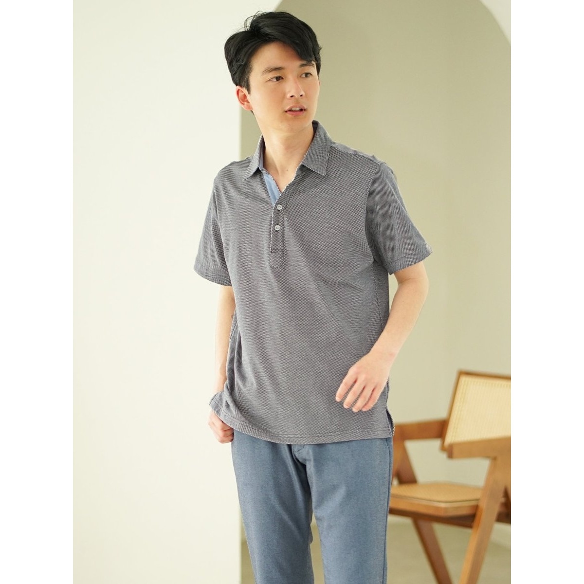 【タカキュー 】メンズ 半袖 ポロシャツ ネイビー 吸水速乾