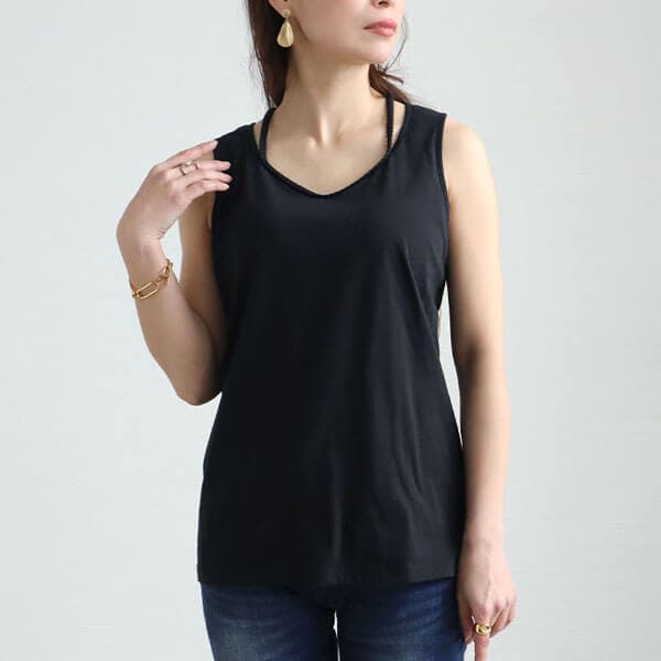 全女子マストバイ!ブラ無しで快適に過ごせるブラカップ付きタンクトップの登場です♪便利なブラカップ付きなので一枚着るだけで下着を気にせずお洒落に着こなしていただけます。ノンワイヤーで締め付け感ゼロのストレスフリーな着心地です◎二の腕の締め付け感なく着用できるほどよく広めの脇ぐり設計でぽっちゃりさんに優しい♪ホルターネックデザインでコーデにさりげないアクセントをプラスしてくれます☆