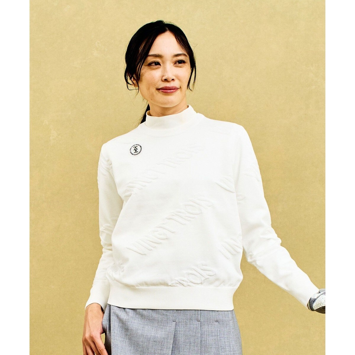 大きなブランドロゴが大胆に配された、フェアウェイで映えるスポーティなニット。