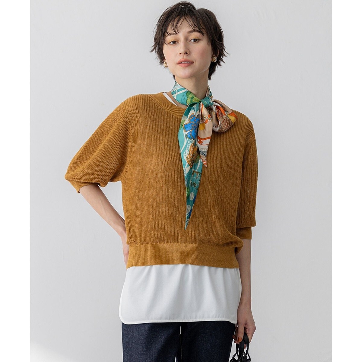 畦編みで編みたてたパフスリーブのニット。袖にボリュームを持たせ、やわらかい印象に仕上げました。襟ぐりはすっきりとボートネックで上品な雰囲気です。コンパクトなデザインがさまざまなボトムスと好相性で着回し力も抜群。麻100%ならではの風合いと発色が楽しめる一枚です。カラーは、目を引くトマト(#020)、ナチュラルな雰囲気のベージュ(#033)、落ち着いた印象のダークブラウン、ニュアンス感のあるイエロー(#040)の4色展開です。