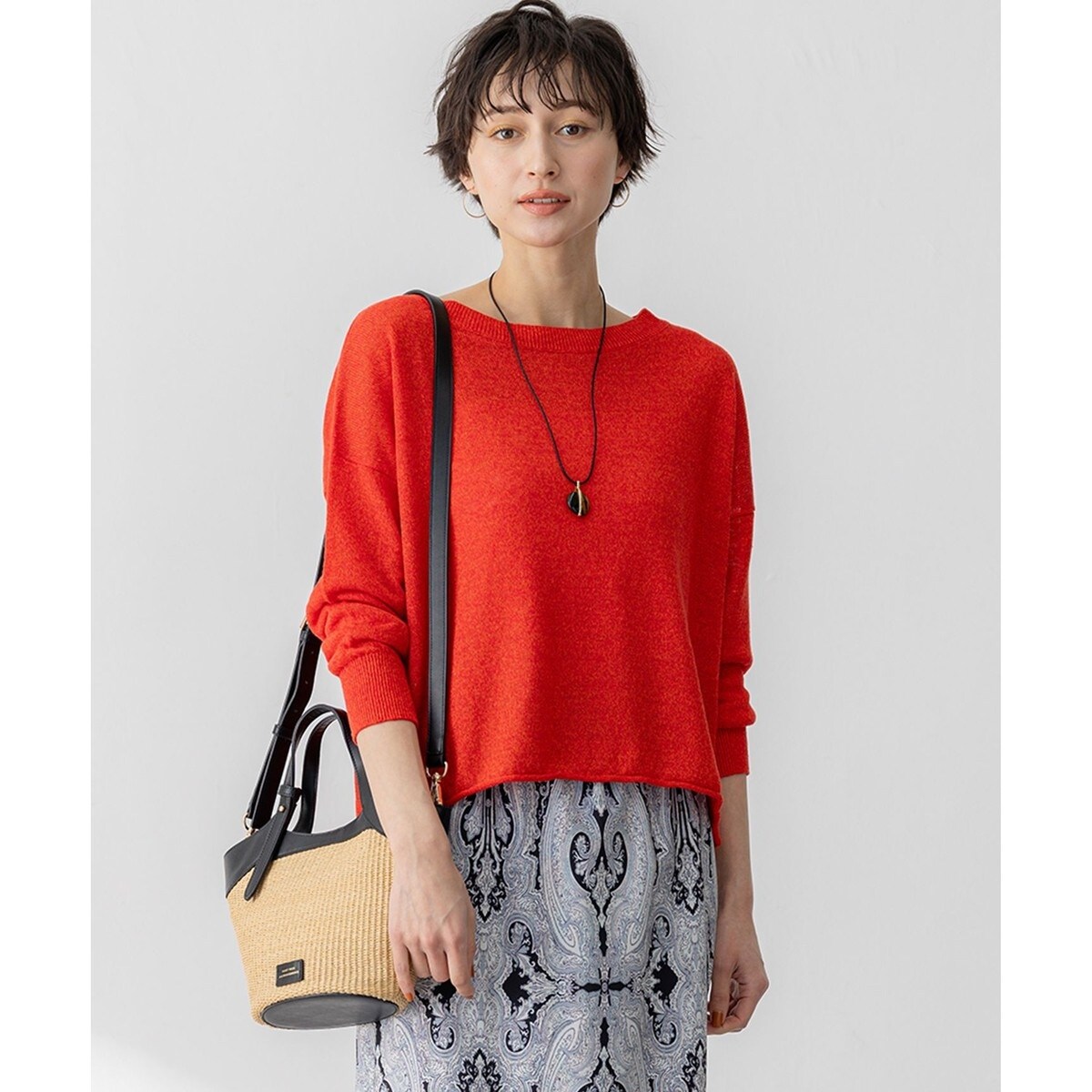リネンならではの質感と深みのあるカラーが美しい、初夏にぴったりな大人のカジュアルニット。ほど良くワイドなシルエットとカットオフ風に仕上げた裾がこなれた印象のラウンドネックデザインです。クロップド丈なのでワイドパンツやスカートとバランスよく着こなせます。インナーにシャツテールやドレープインナーなどを合わせたレイヤードスタイルもおすすめです。カラーは、目を引くトマト(#020)、ナチュラルな雰囲気のベージュ(#033)、落ち着いた印象のダークブラウン、ニュアンス感のあるイエロー(#040)の4色展開です。
