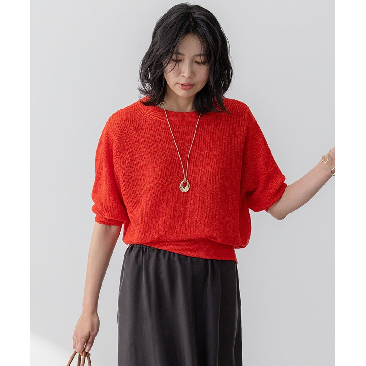 畦編みで編みたてたパフスリーブのニット。袖にボリュームを持たせ、やわらかい印象に仕上げました。襟ぐりはすっきりとボートネックで上品な雰囲気です。コンパクトなデザインがさまざまなボトムスと好相性で着回し力も抜群。麻100%ならではの風合いと発色が楽しめる一枚です。カラーは、目を引くトマト(#020)、ナチュラルな雰囲気のベージュ(#033)、落ち着いた印象のダークブラウン、ニュアンス感のあるイエロー(#040)の4色展開です。