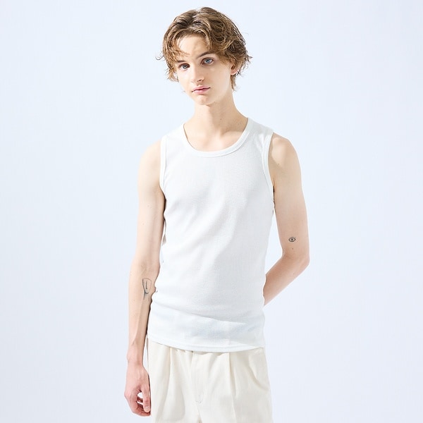 レイヤードスタイルが楽しめるタンクトップが着心地抜群のテレコ素材で登場。