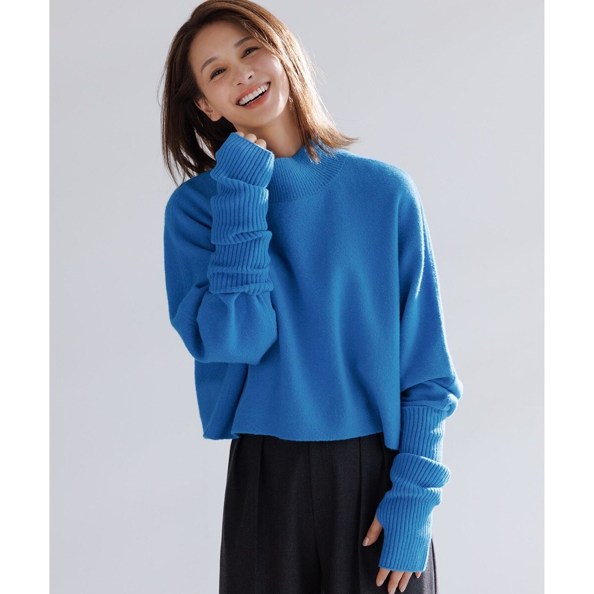 ■デザインハイネックで程よいオーバーサイズのドルマンスリーブのプルオーバー。クロップド丈でインしなくても、どんなボトムともバランスが取りやすいのが嬉しいポイント。さらにシャツやワンピスとのレイヤードもきまりやすい使い勝手の良いアイテムです。