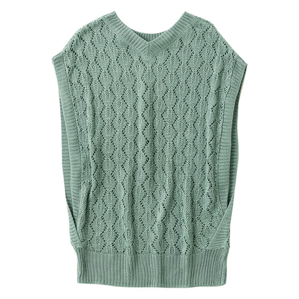 ・夏らしい透かし編で清涼感たっぷり。ダイヤ柄風の編柄が