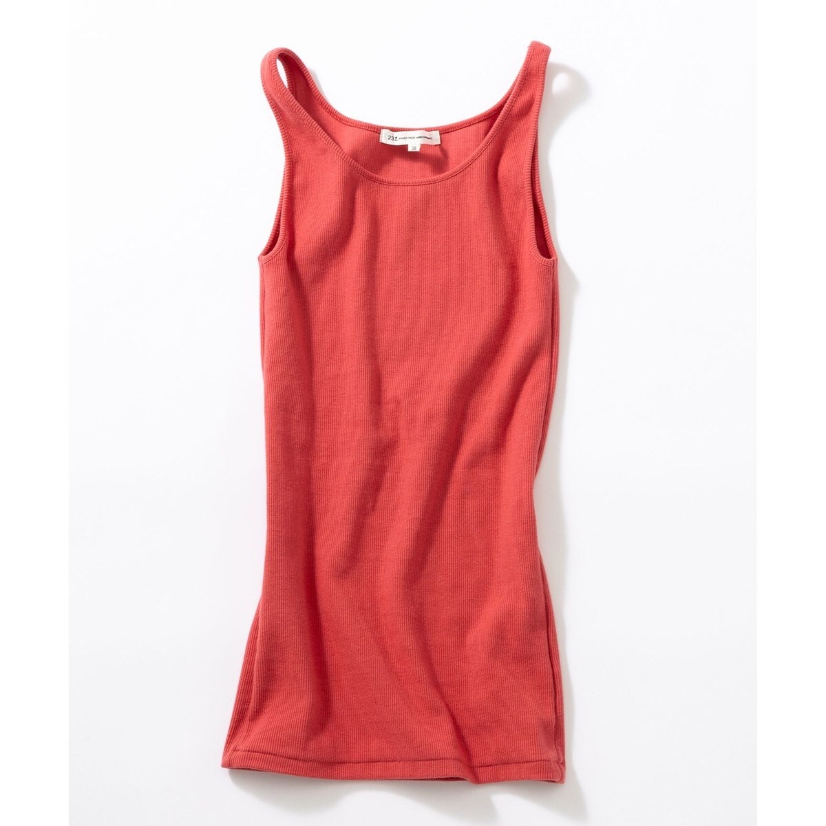襟の開き具合にこだわり、デコルテを美しく見せつつもヘルシーな印象に仕上げたタンクトップです。 筒状に編まれた生地を使用することで脇の縫い目をなくしたシームレス仕様を採用しており、肌あたりが滑らかでストレスフリーな着心地を追求しました。体に程よくフィットするシルエットは、シャツやカーディガン、ジャケットのインナーとして最適で、もたつかずすっきりと着こなせます。トレンドのシアートップスとのレイヤードにも活躍する、大人のワードローブに欠かせないベーシックアイテムです。カラーは、清潔感があり合わせやすいホワイト(#001)、ニュアンスのある洗練されたライトグレー(#003)、コーディネートを引き締めるブラック(#005)、差し色として目を惹くオレンジ(#020)、ニュアンスのあるカーキ(#054)、大人っぽいパープル寄りのブルー(#070)、くすみ感がオシャレなライトオレンジ(#022)・カジュアルスタイルに映えるモスグリーン(#053)の8色に、新色の柔らかな色味で女性らしいピンク(#012)、涼やかで爽やかなスカイブルー(#072)を加えた計10色のラインナップです。