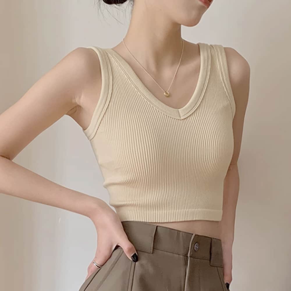 適度に広く開いた胸元と背中、カジュアルに着こなせるタンクトップ。