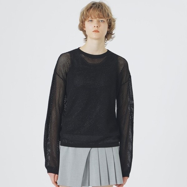 シンプルなインナーをレイヤードして、メッシュ素材の透け感を活かした軽やかなスタイリングがおすすめ。