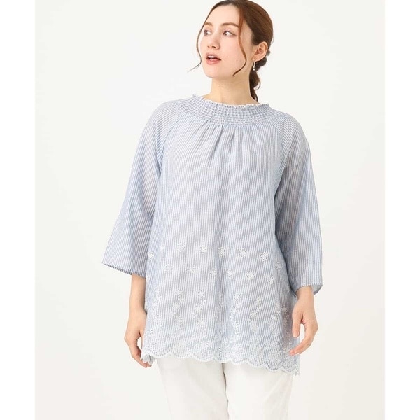 EMOTIONS シャーリング ブラウス 大きい ブルー 刺繍 XL