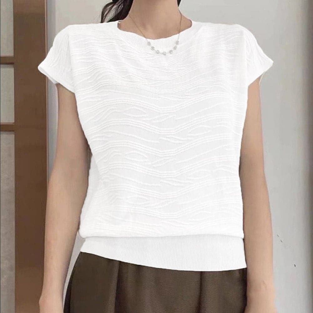 程よく女性らしさを感じさせるクルーネックサマーニット